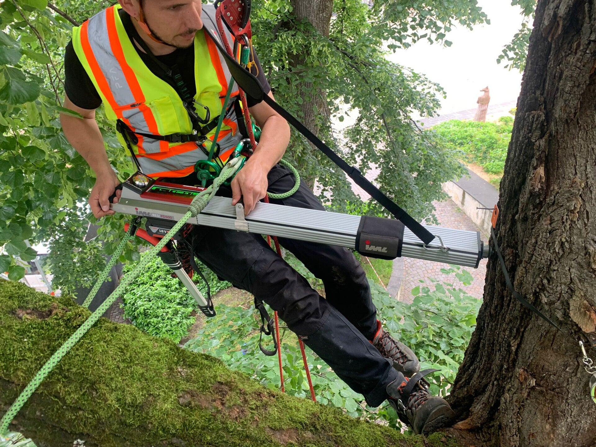 L’outil le plus courant est le résistographe, qui permet de mesurer la résistance mécanique du bois. Son principe repose sur une fine aiguille pénétrant le tronc ou les branches pour enregistrer les variations de densité rencontrées.